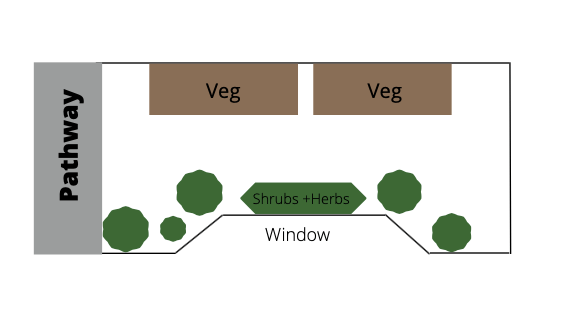 Our flat has a small front yard and a larger shadier back yard. When we moved in in 2020, the front was some dilapidated concrete and the back was some slightly nicer concrete. Not a lot of green for a girl who likes green!